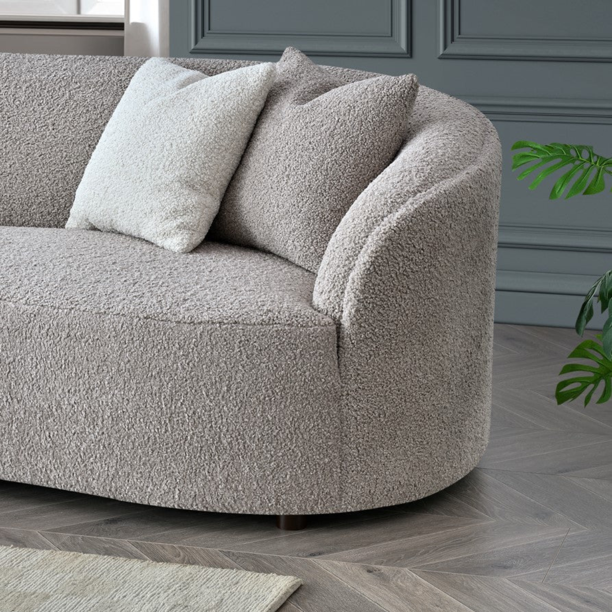 Explore the luxurious Nolita Boucle Teddy 3 Seater Sofa - a perfect blend of style, comfort, and functionality. This elegant sofa features a soft boucle fabric and plush teddy texture, elevating any room it graces. Its signature organic silhouette, curved backrest, and plush cushioning create a cozy and comforting experience. The neutral colour palette adds a timeless touch, making it a versatile addition to any living space.