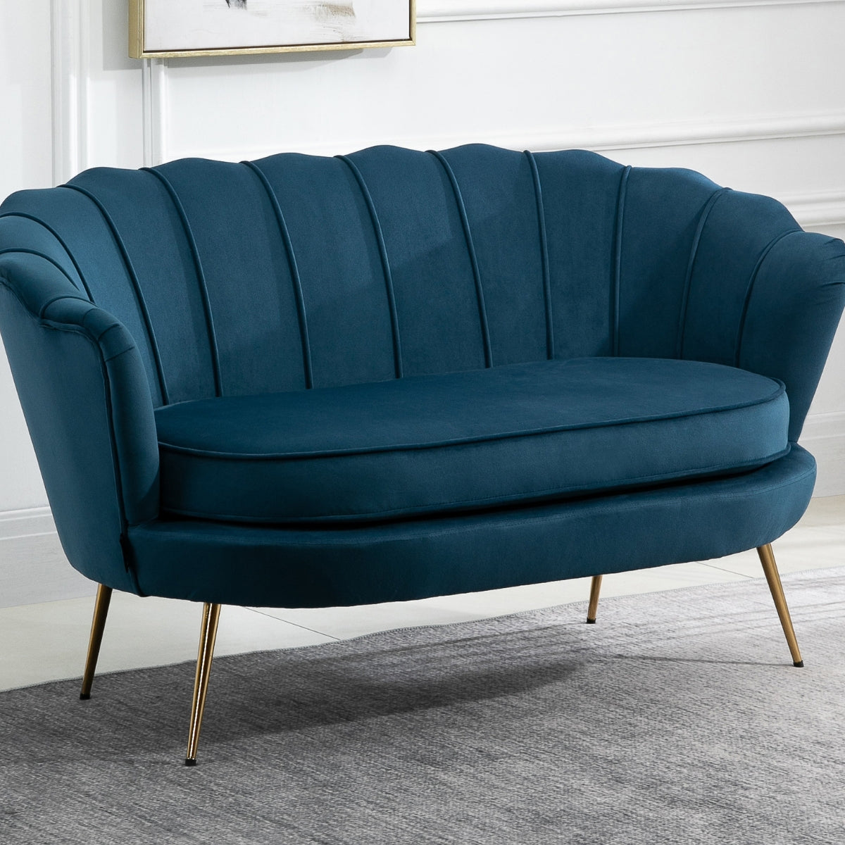This chic two-seater will add a sumptuous touch of retro Hollywood glamour to any room. Crafted in an opulent soft-touch fabric, the Ariel two-seater boasts ample charm and sophistication. Luxuriously upholstered and set upon elegant gold legs, this piece of furniture is a decadent addition to any living room, bedroom, or hotel. Maximum weight load: 130 kg.