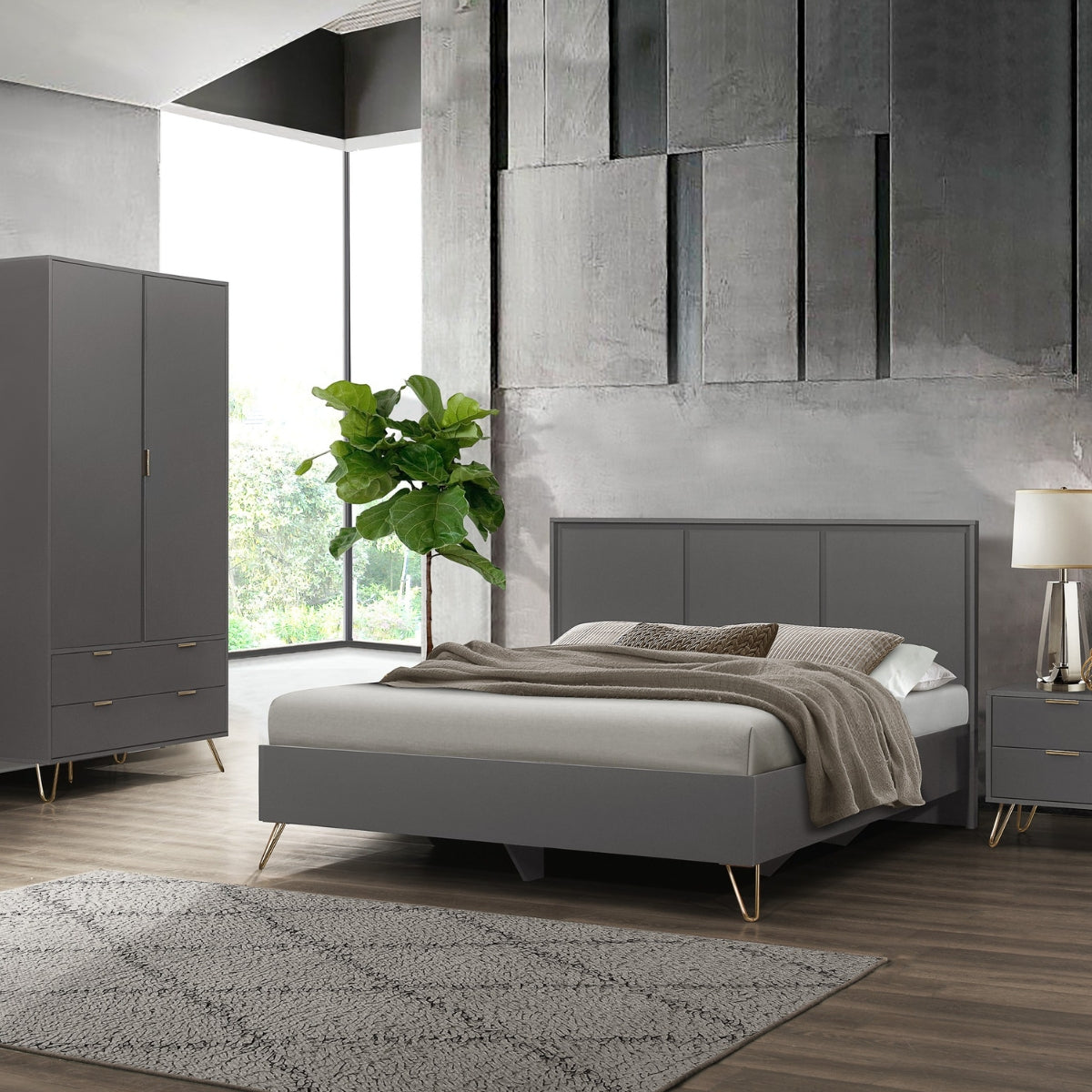 The Arlo emanates a timeless, modern aesthetic with its sleek, matt grey finish and gold accent hairpin legs - sure to awe and impress. Available in small double or double sizes, the bed is fitted with a solid slatted base for sturdier support and increased air circulation beneath the mattress.