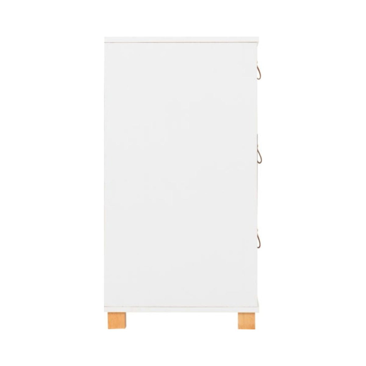 This contemporary chest of drawers presents a visually captivating design combining white, oak-effect and grey. Its faux-leather handles facilitate use, and its generous drawer space makes it the ideal storage and decorative solution for your bedroom.