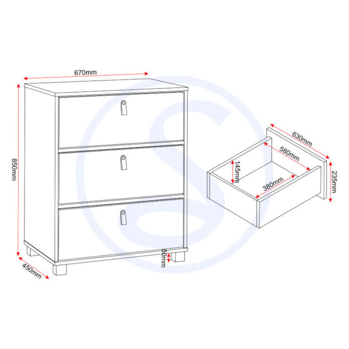 Brooklyn 3 Drawer Chest in Oak Effect and Grey Finish