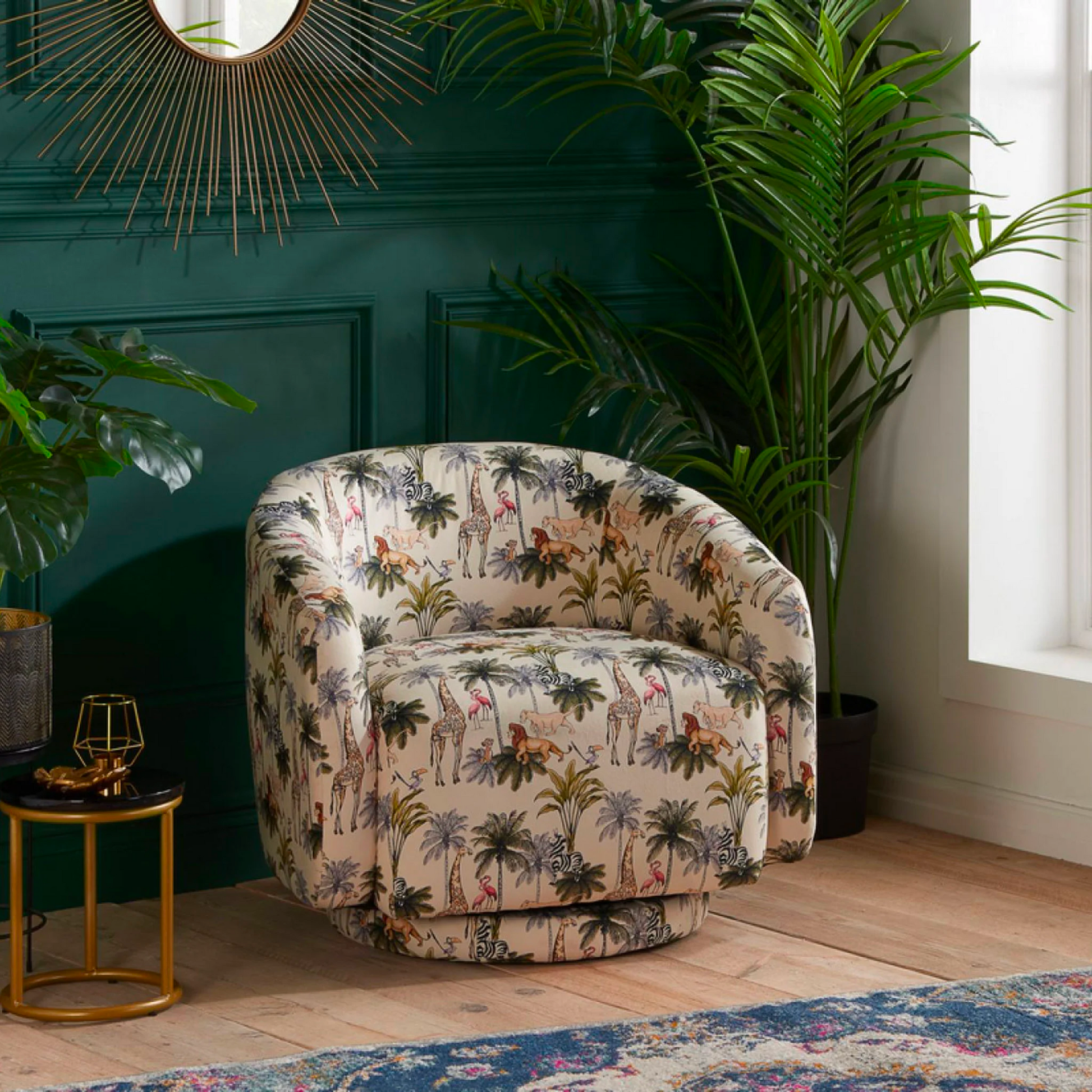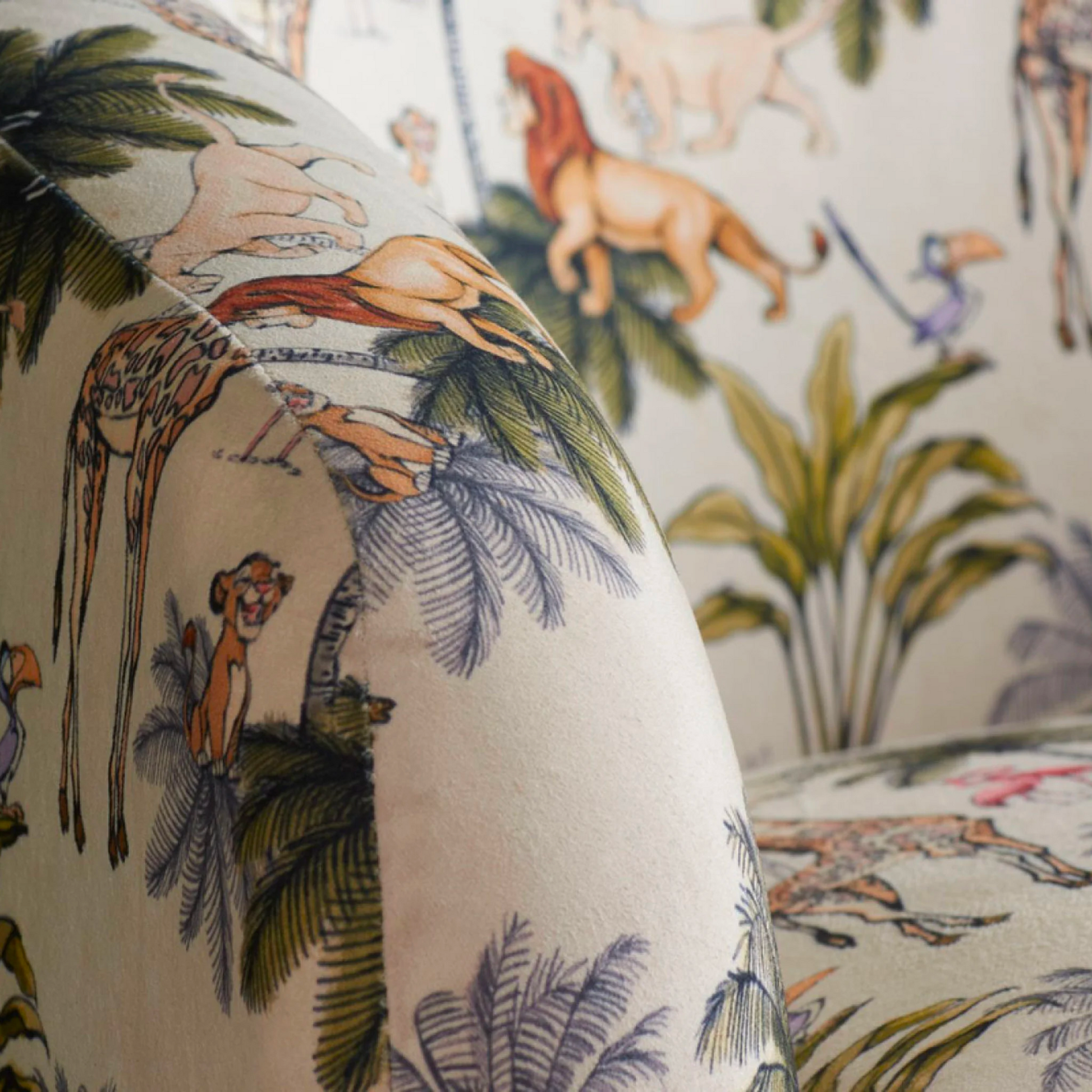 Experience luxury and quirkiness with the Disney Lion King accent swivel chair. This iconic tub chair boasts a stunning Lion King pattern and a barrel back design, all while providing functionality with its swivel round base. Perfect for any interior, with a maximum weight load of 110kg. Hakuna matata!