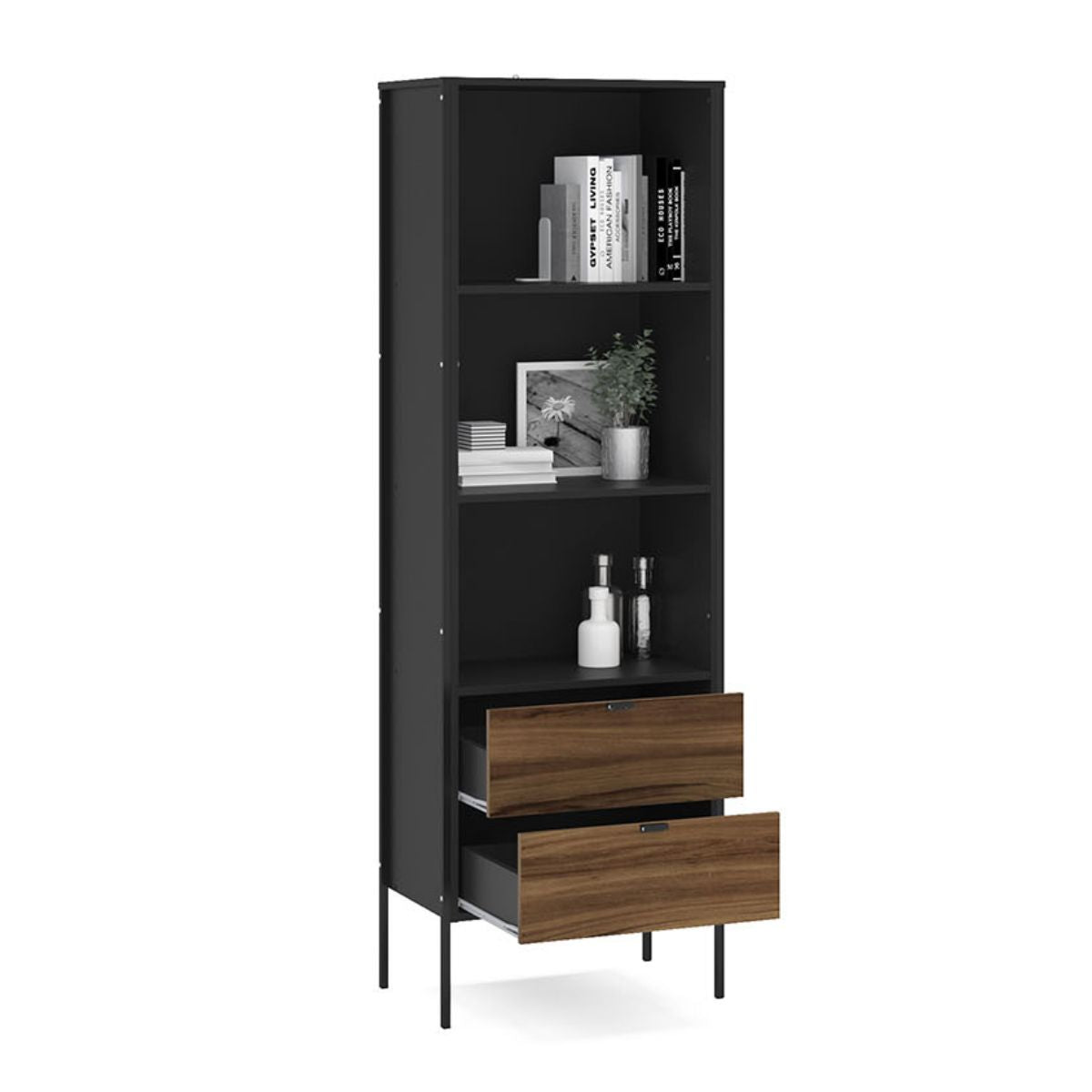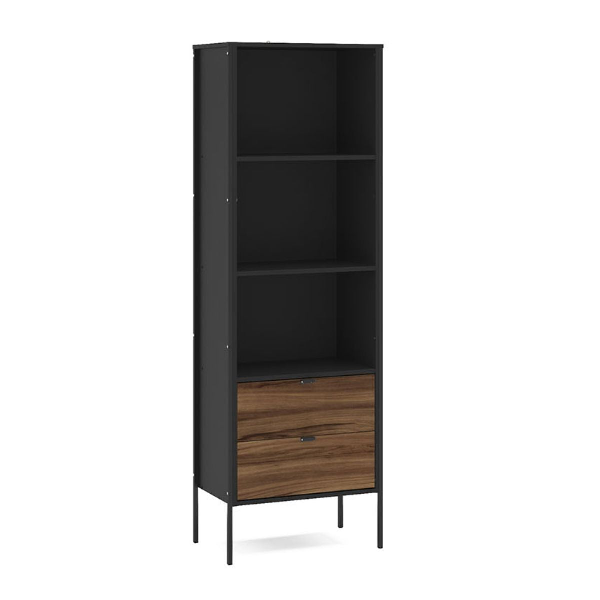 Organise your home office with style and substance with the Opus 2 Drawer Bookcase. The sturdy metal frame and walnut & black wood-effect finish are both attractive and robust, while two large drawers and spacious shelves provide plenty of storage for books, files, ornaments, and more. Complete with easy-care instructions, the Opus range is the perfect addition to your home.