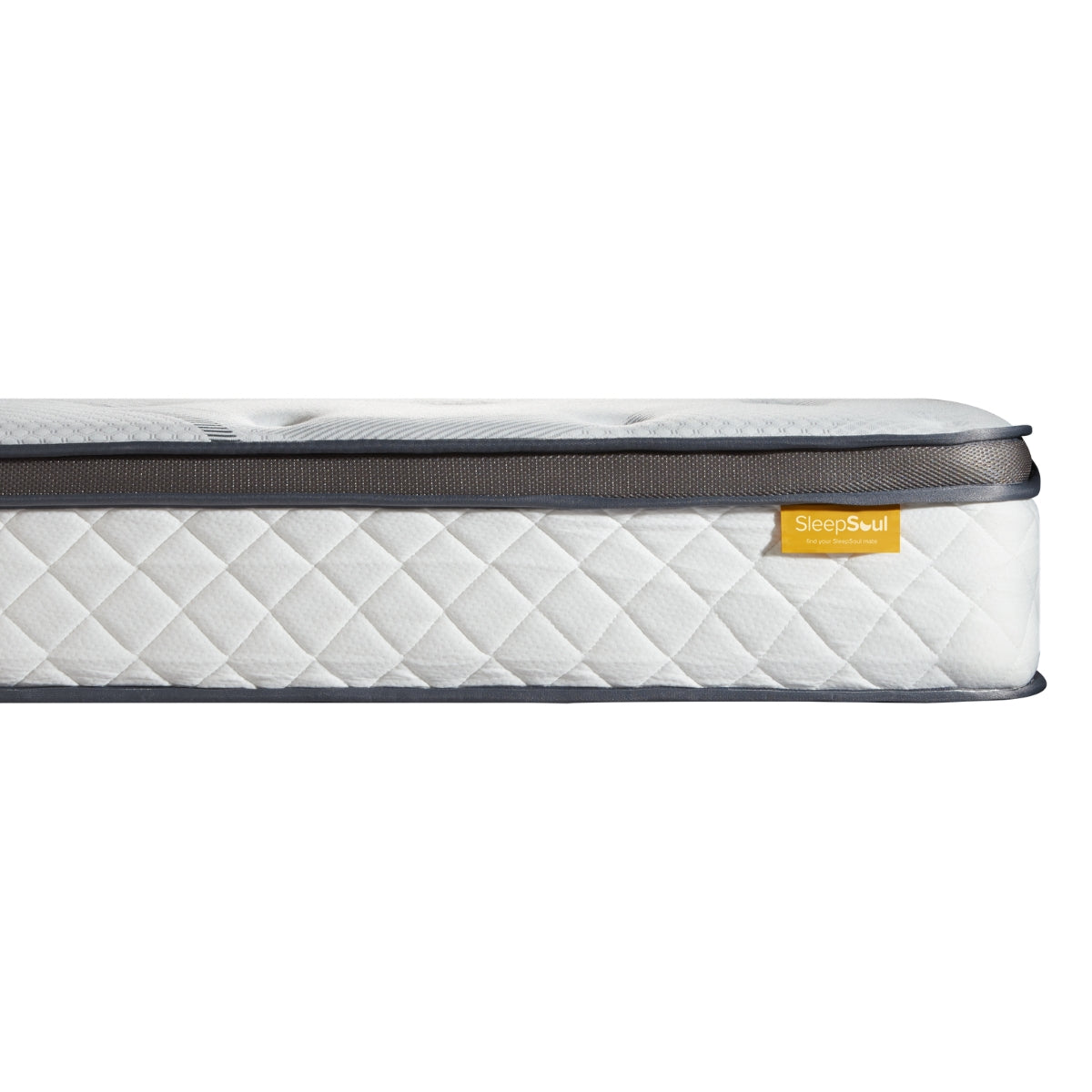 Experience the ultimate comfort and support with SleepSoul Heaven mattress. With 1000 pocket springs and layers of plush foam, this mattress conforms to your body for a deep, restful sleep. The 2cm coolgel layer molds to your body, relieving pressure and preventing movement. Sleep soundly with SleepSoul.