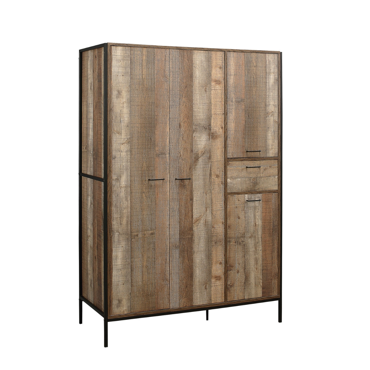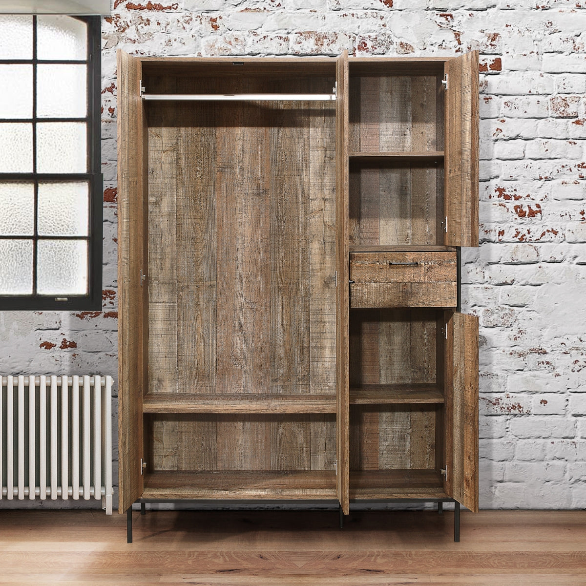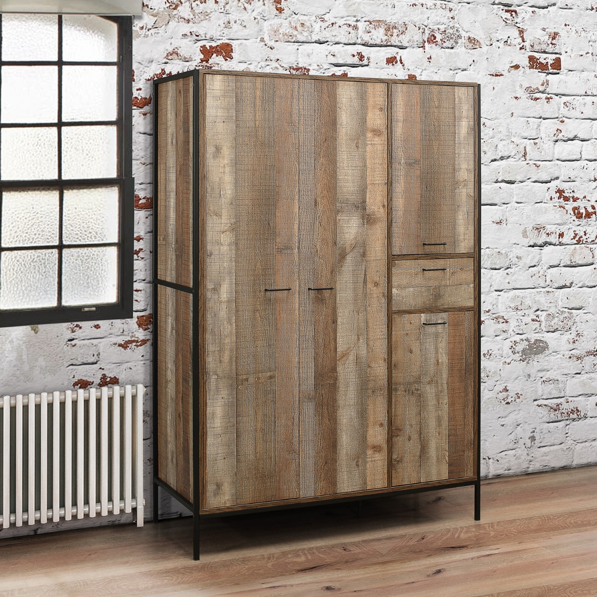 Our Urban Rustic 4 Door Wardrobe brings chic industrial style to any bedroom. Crafted from a metal frame with wood-effect finish, it offers ample space and features internal shelves and drawers to store clothing and accessories. With easy-care instructions, this piece is sure to become a lasting addition to your home.
