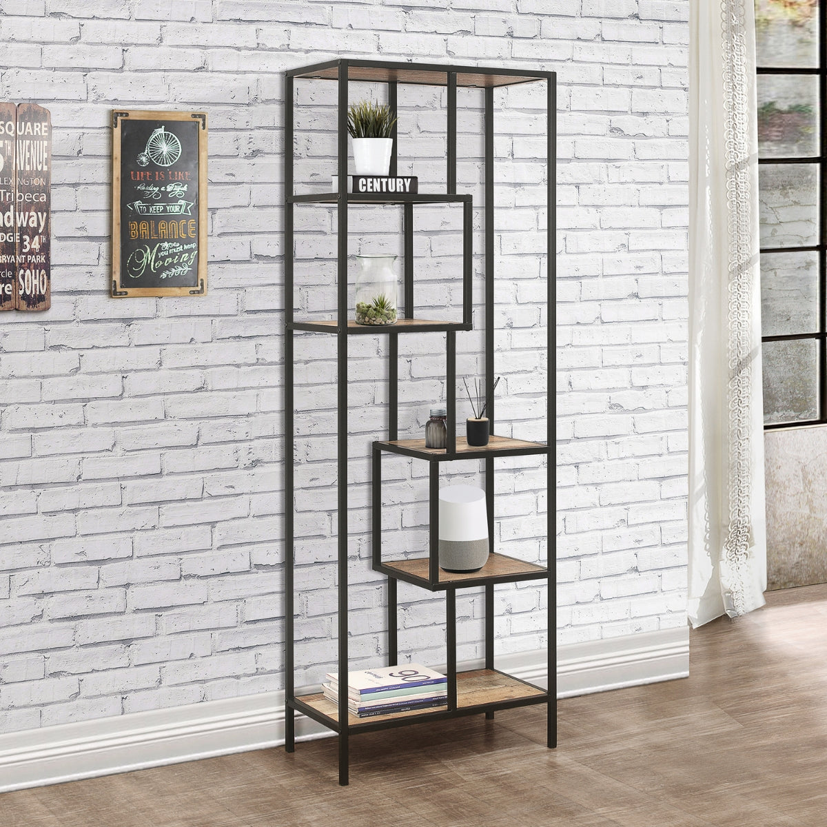 Our Urban Tall Shelving Unit blends industrial chic with efficient storage space. The metal frame features industrial-effect detailing, and the wood-effect finish adds a touch of warmth. Use it with the Urban Medium and Wide Shelving Units to create a complete look. Easily clean it with a soft, dry cloth to keep it looking its best.